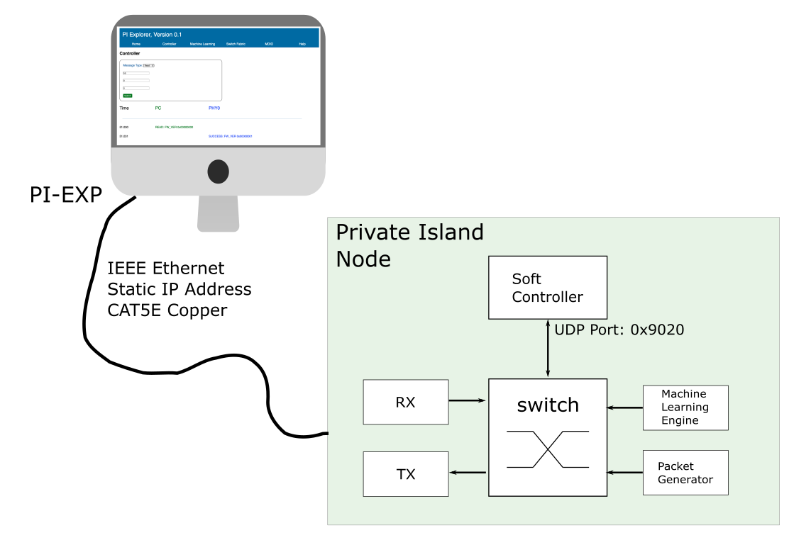 The Private Island Explorer (PI-EXP) Web Server provides a browser based user interface (UI) to a Private Island FPGA-based (PI) node via an Ethernet LAN. The server is intentionally light weight and currently relies on the aiohttp Web framework to serve pages to a browser and also exchange information via a WebSocket interface. This in-progress article describes the goals, features, usage, dependencies, and design of the project.